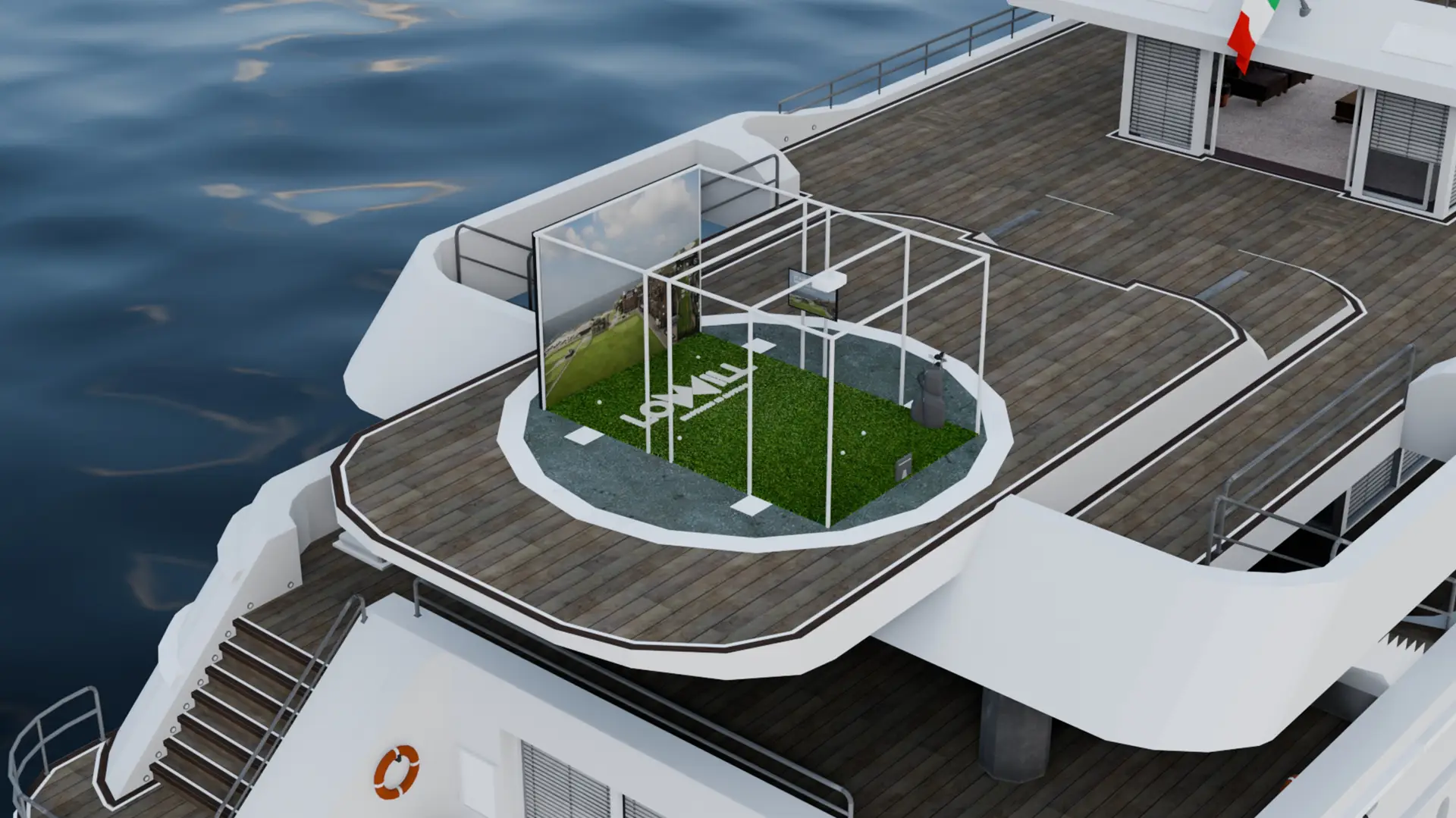 Trasforma il ponte del tuo yacht in un vero e proprio campo da golf, dove intrattenere i tuoi ospiti.